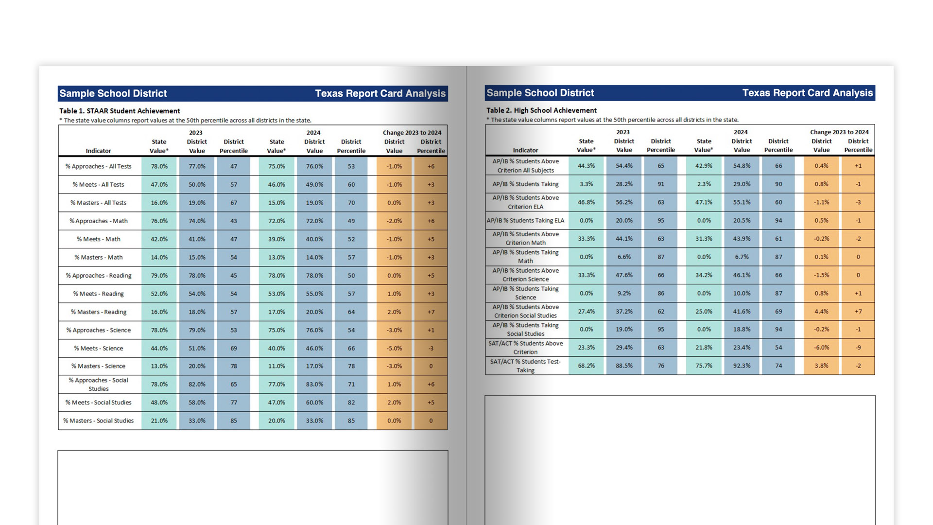 Extract positive messages through a more accurate analysis of state data, all in two turn-key and easy to understand PDFs for board and community reporting.