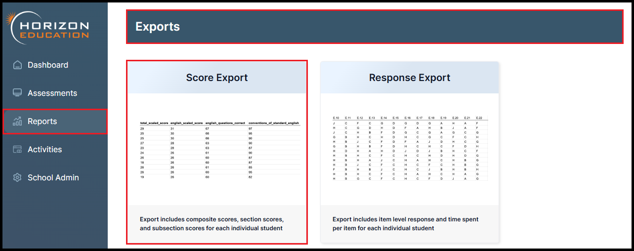 This guide provides step-by-step instructions for exporting test scores from the Horizon platform. Follow these instructions to ensure you retrieve and securely send the correct data to ECRA Group.