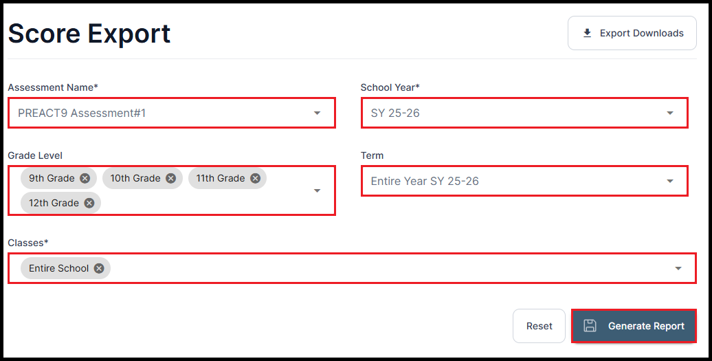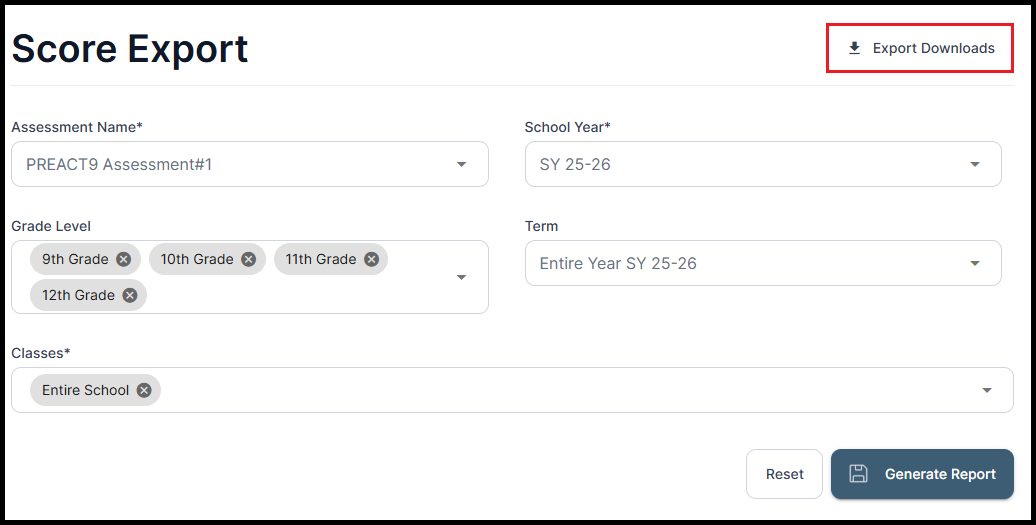 – School Year: Select the desired school year from the dropdown.