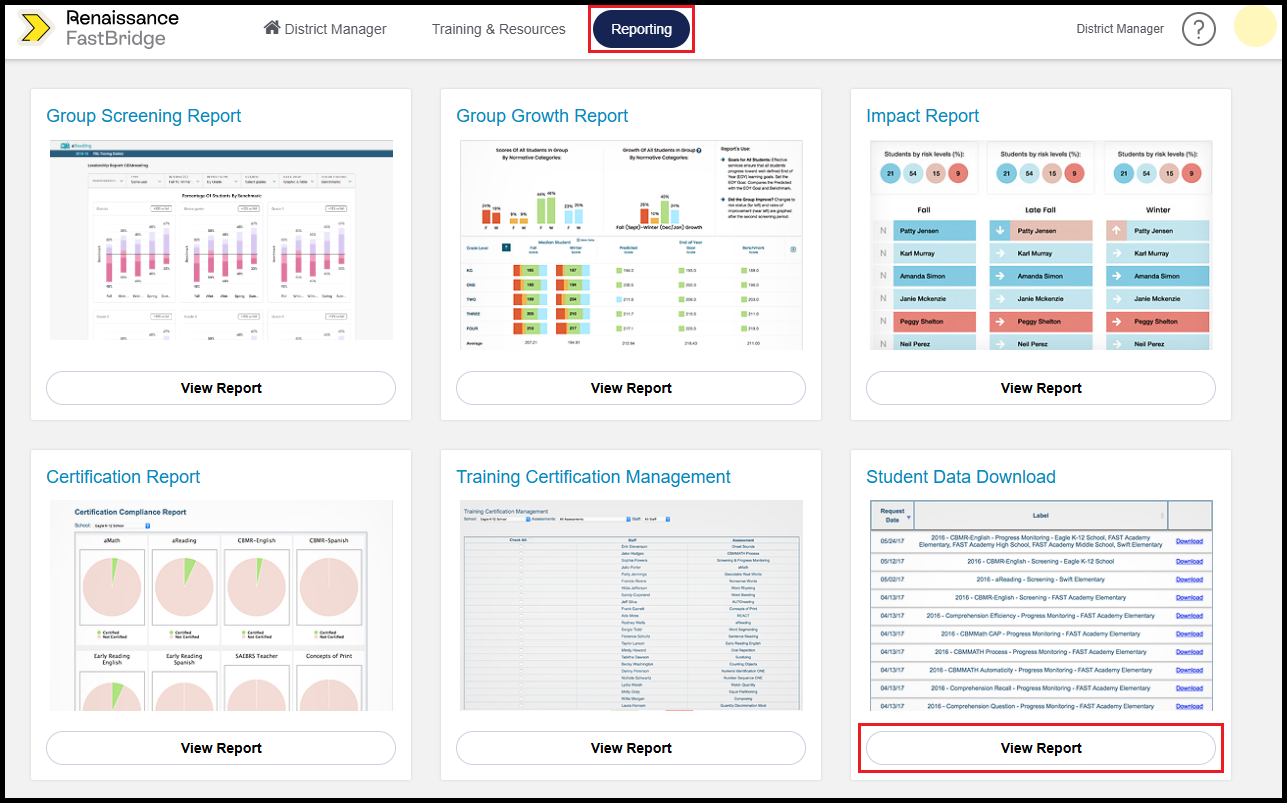 – Under Student Data Download, click View Report.