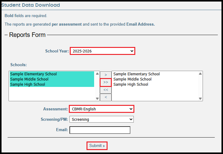 – Schools: Click the >> button to move all schools over to the box to the right.