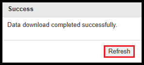 – Click Refresh in the pop-up window that confirms the successful data download.