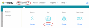 - Click on the blue “Manage” button under Staff to begin the user creation process.